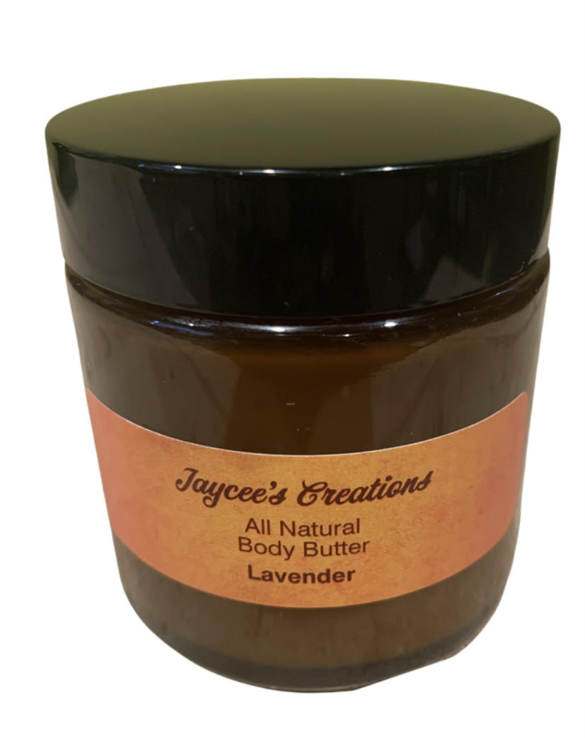 Lavender Body Butter is a soft all-natural scented cream made with shea butter and essential oil. It can be used all over the body excluding personal areas. Lavender butter is therapeutic not only for skin it also helps you unwind and relax and has numerous benefits to help you take care of you.